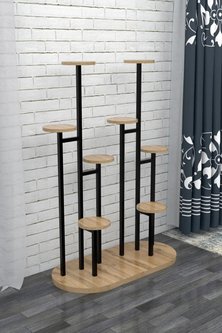 Bring life to your living space with this Contemporary Multi-Tier Plant Stand, combining natural wood tones with a sleek black metal frame. Perfect for showcasing your favorite indoor plants, this stand features multiple circular tiers at varying heights to create a dynamic and decorative display. Whether placed in your living room, balcony, or by the window, it elevates both your plants and your interior style.