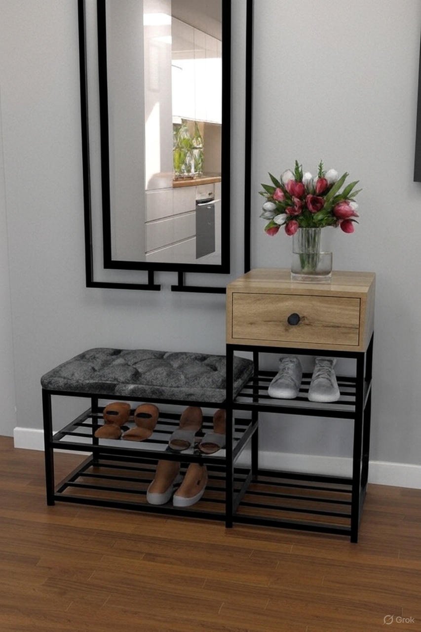 Modern Entryway Shoe Rack with Cushioned Bench & Drawer