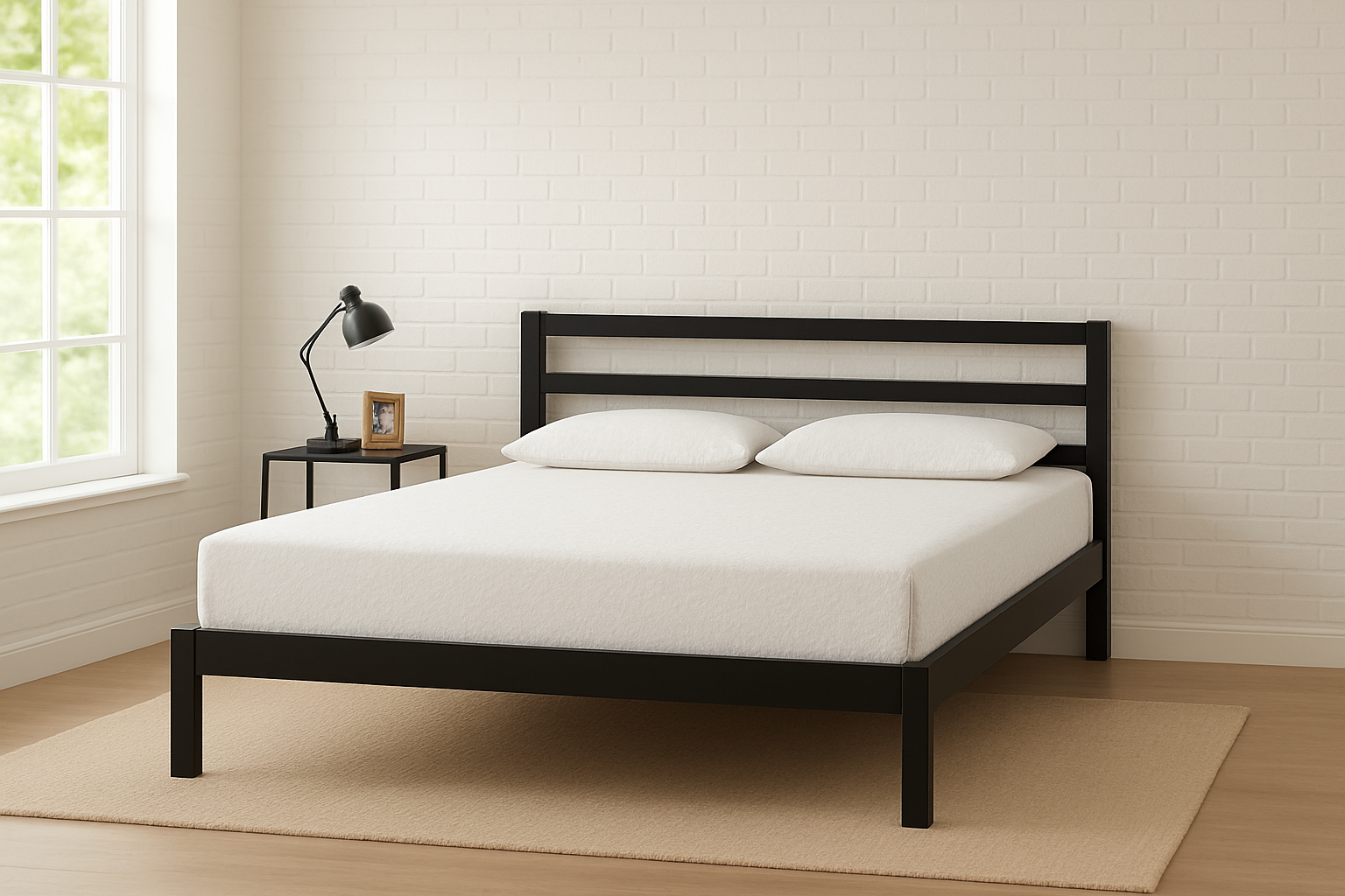 Sturdy black wooden frame with modern design